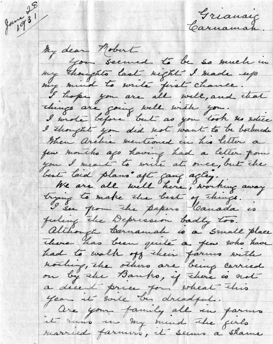 brother Robert, who this letter was written to, immigrated to Canada.